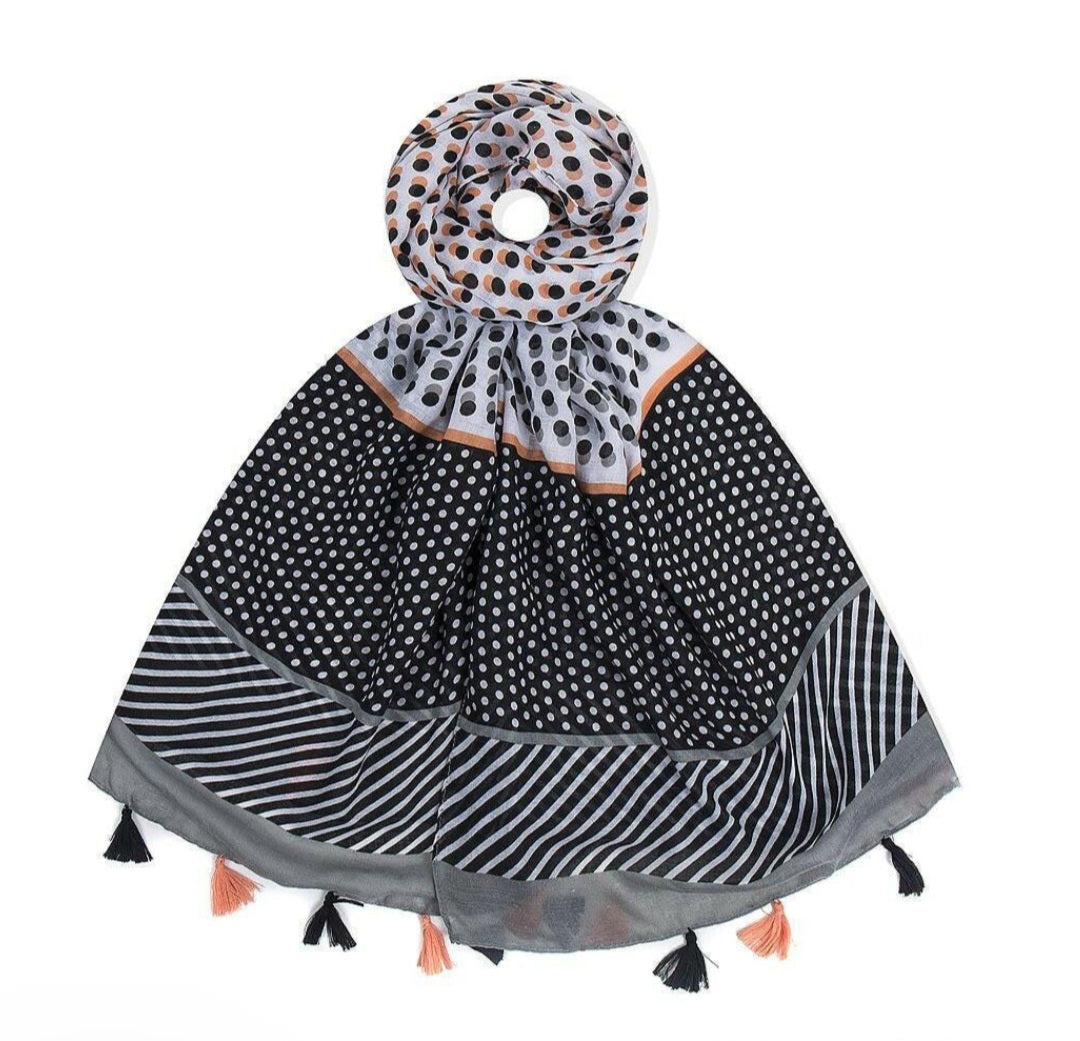 This lovely Maithe polka-dot and stripe Scarves have fringes at both ends of the Scarves, these Scarves make a ideal gift or a treat for yourself