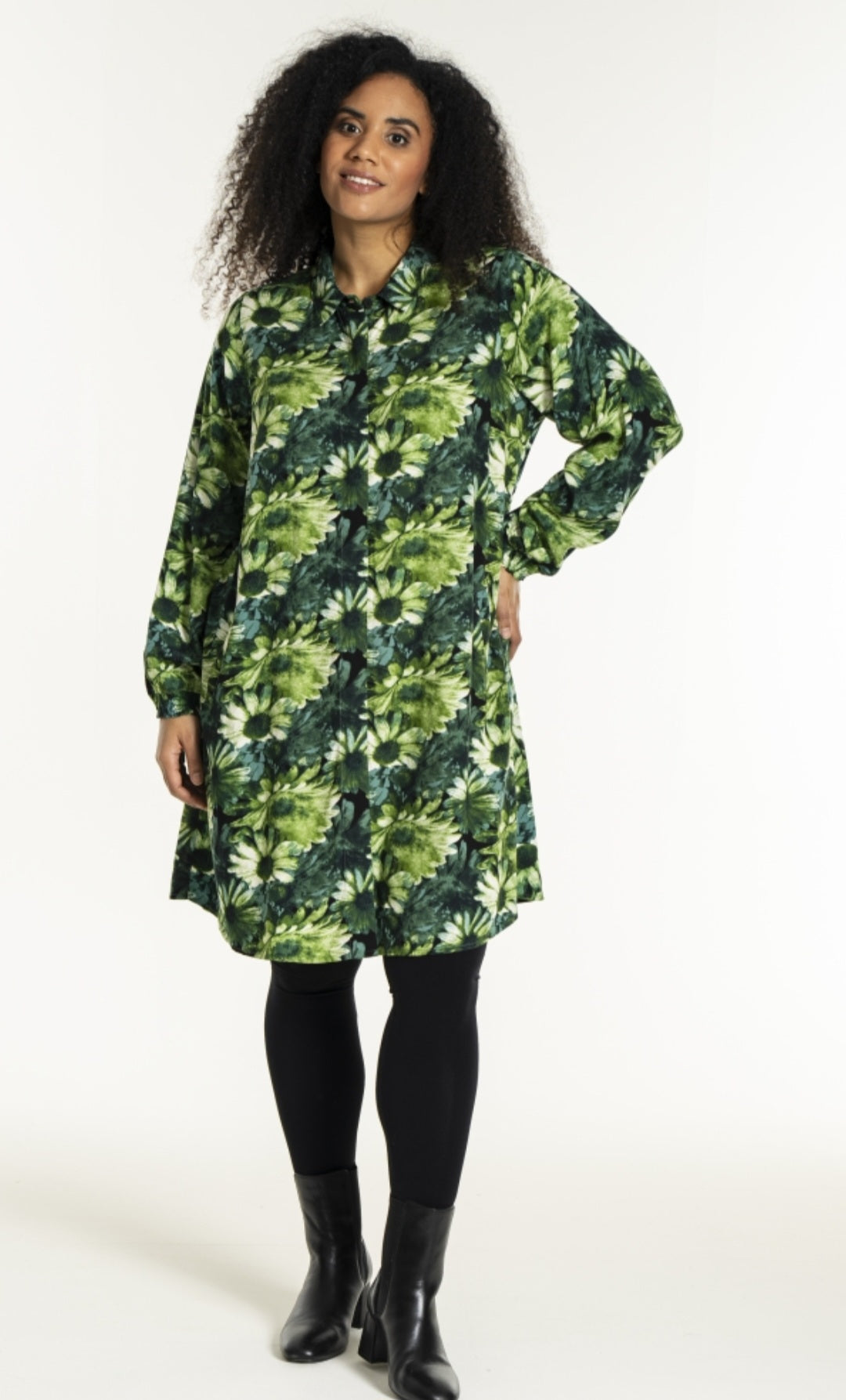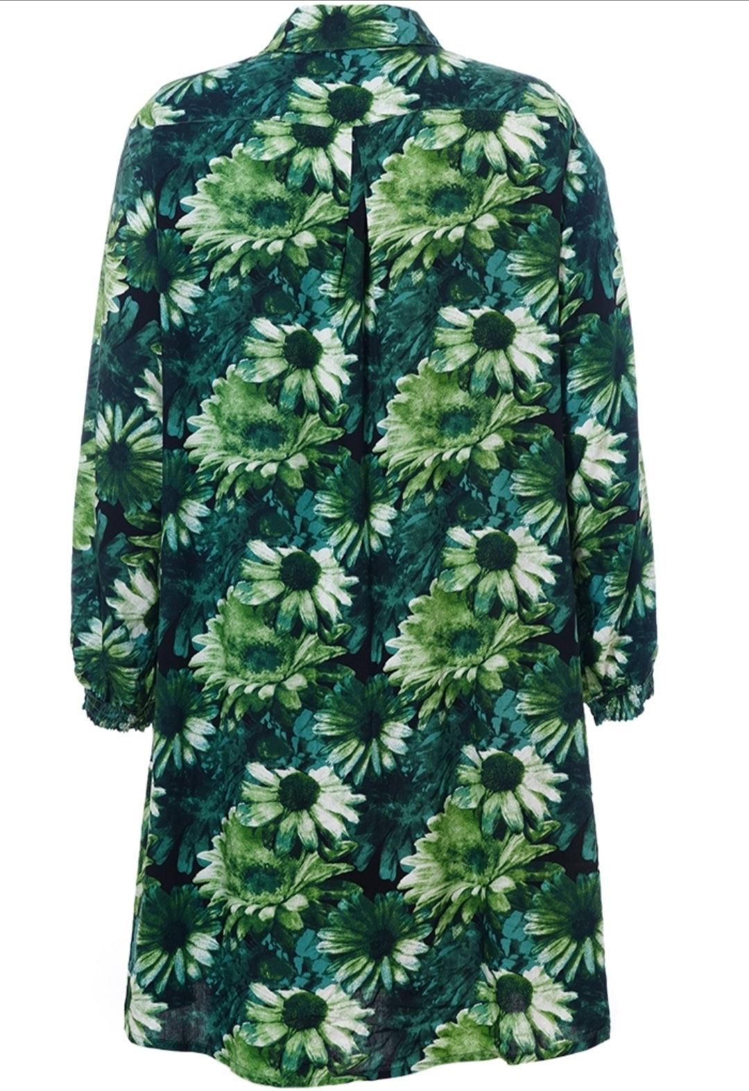 This Studio green floral print pattern dress shirt has a nature- Inspired look , has a classic shirt collar and a hidden button Closure all the way down the front, the sleeves are long with smock cuffs