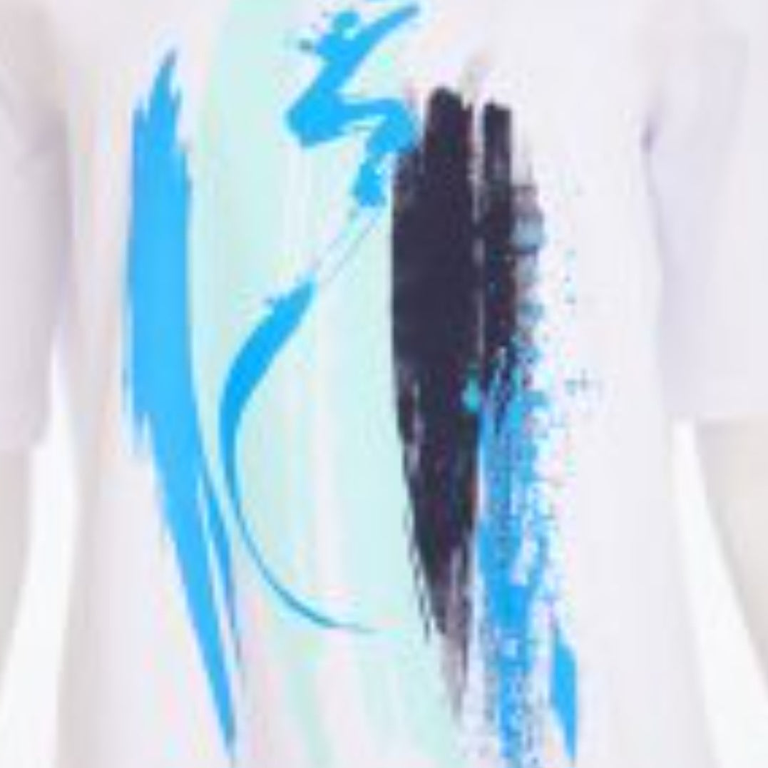 This Ora mofit print tee shirt  has a classic round Neckline, this high cotton mix tee has beer upgraded with a vertical print , has a short sleeves