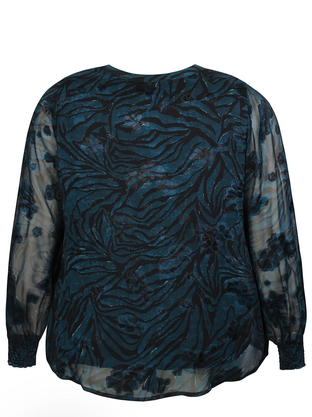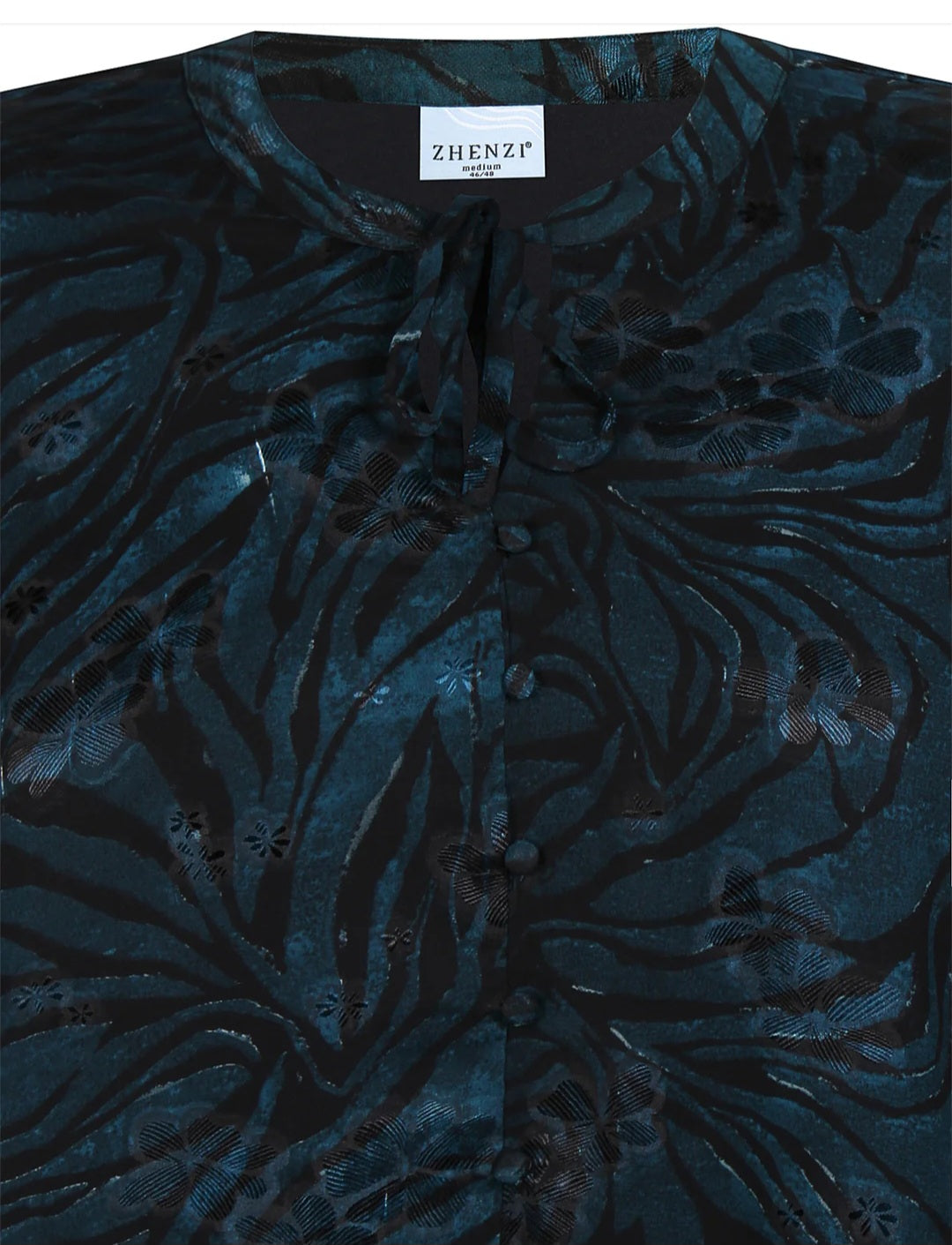 This Zhenzi Tula blue Blouse with a round Neckline with long sleeves with thick Cuffs at the end of sleeves, lovely covered buttons foe a touch of extra luxury, plain bottom hemline