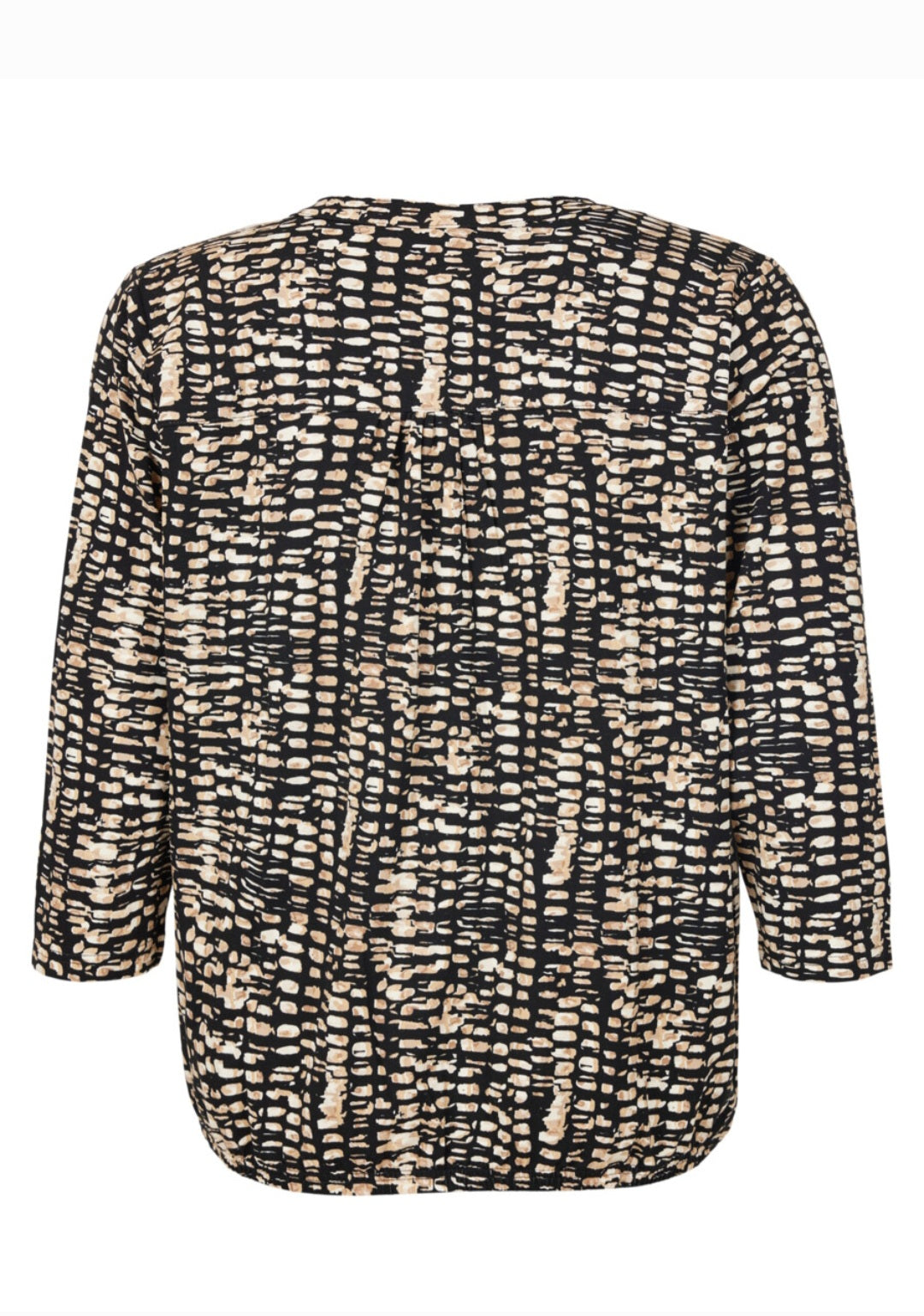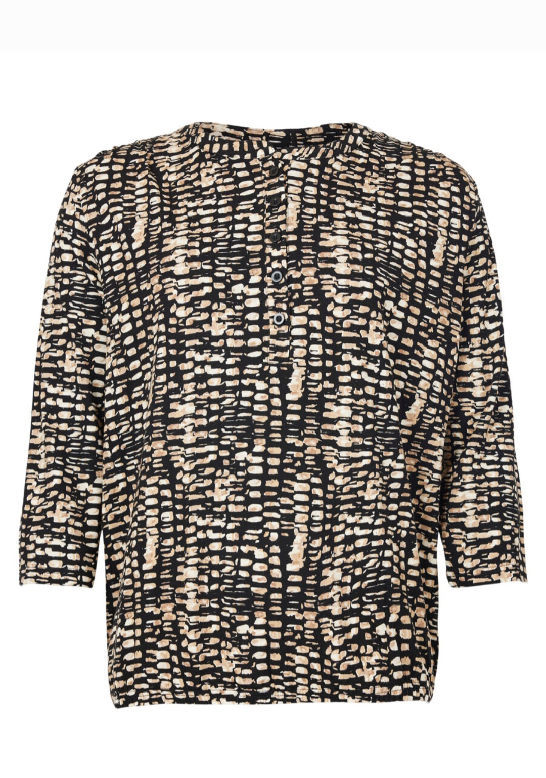 These Brandtex pebble abstract print tops have a round Neckline with 3/4 sleeves,elastication on the bottom hemline  , comfort stretch to the fabric