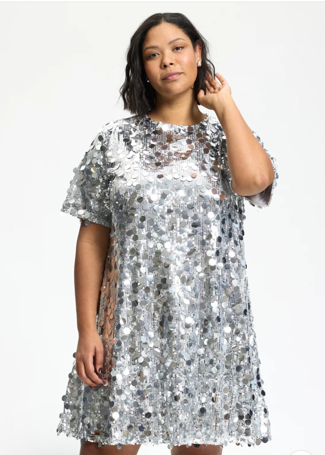 This Anyday Tunic silver Metallic dress adds that spark to the Statement dress ideal for that special celebration occasion ,This dress has a round Neckline with short sleeves and is cut on the A line