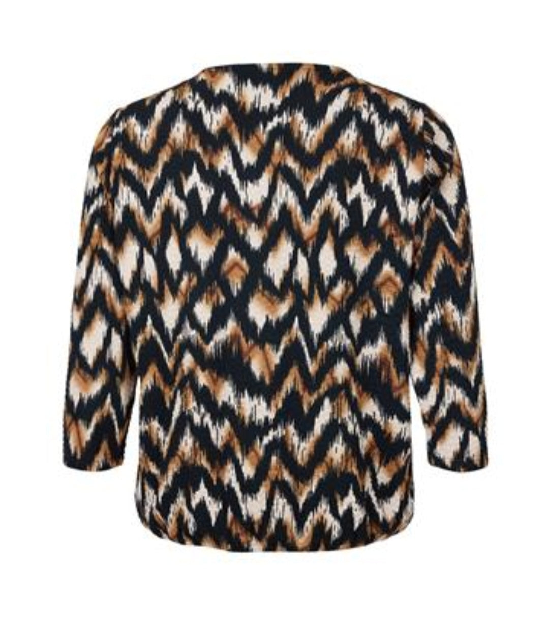 This Brandtex black and Tan brown print top has a round Neckline with 3/4 lenght sleeves has plain bottom hemline, comfort stretch to the fabric